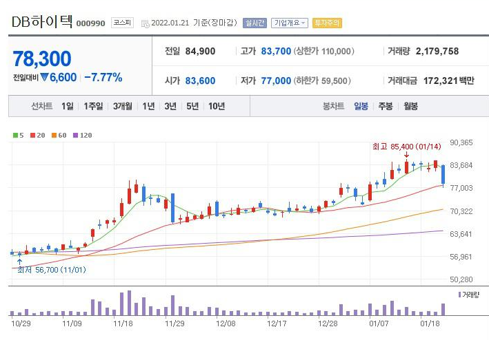 일봉 차트상 흐름도 하락세에 접어든 모양입니다.